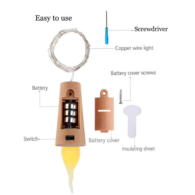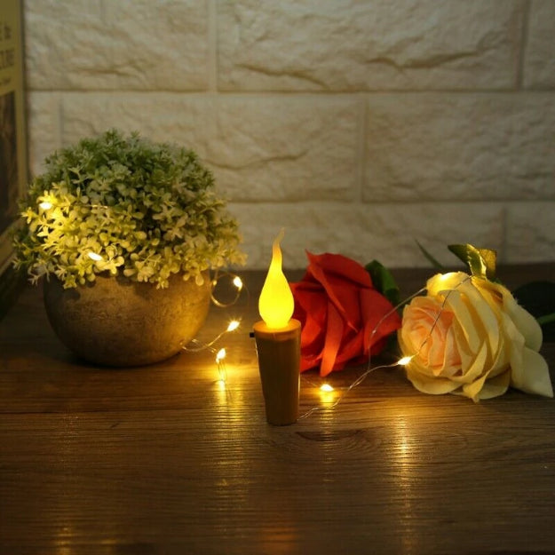 Copper Wire Fairy LED String Lights with Bottle Cork and Candle - Battery Operated | Pack of 10