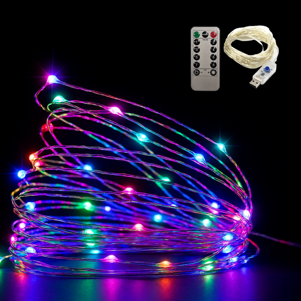 Copper Wire Fairy LED String Lights - USB Operated | 8 Function Remote Control | Multi