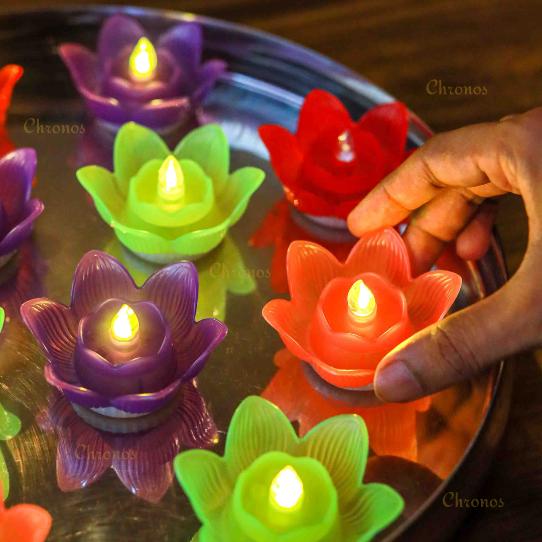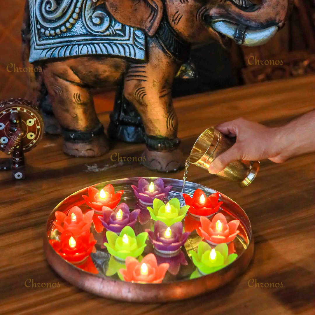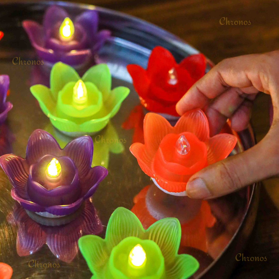 Floating Lotus Water Sensor LED Diya | Multi Color Yellow LED | Pack of 6