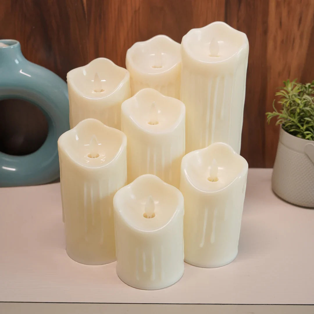 LED Moving Flame Pillar Candle - Dripping Ivory
