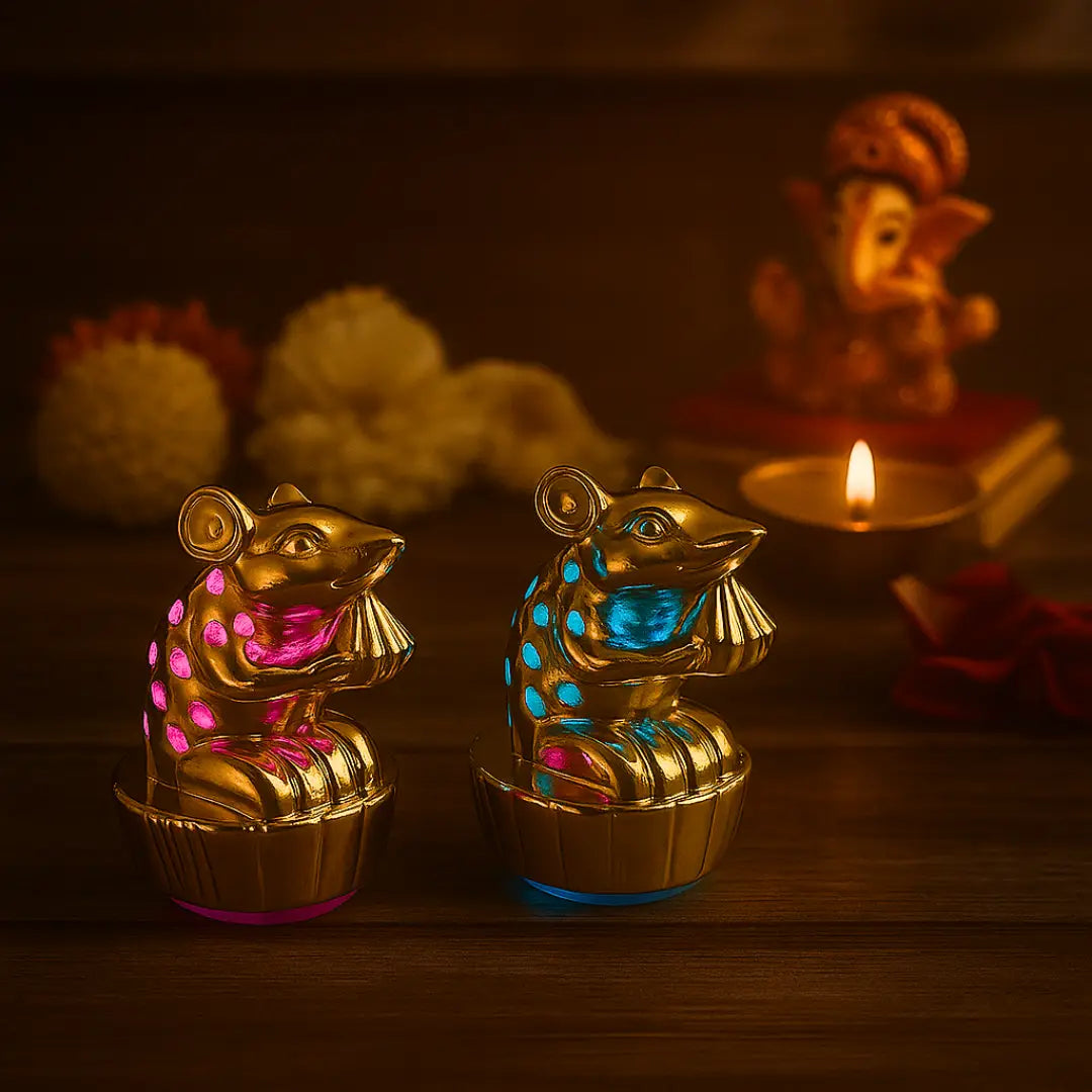 LED Mushak Lights (Set of 2) – Colour-Changing Decorative Ganpati Décor | Battery Operated | Safe & Smokeless