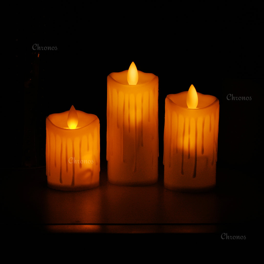 LED Moving Wick Dripping Pillar Candle - Pack of 12