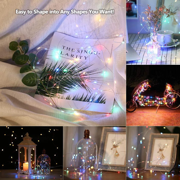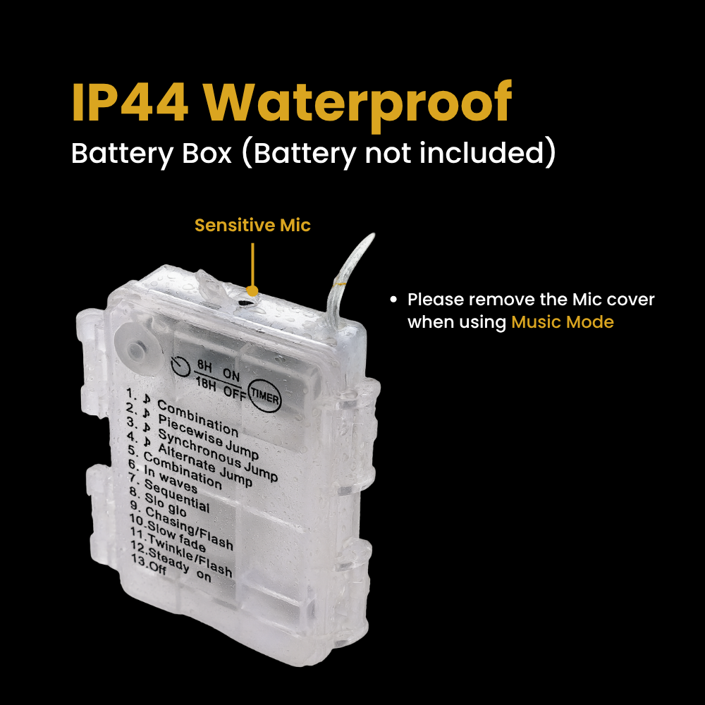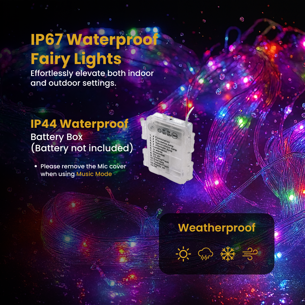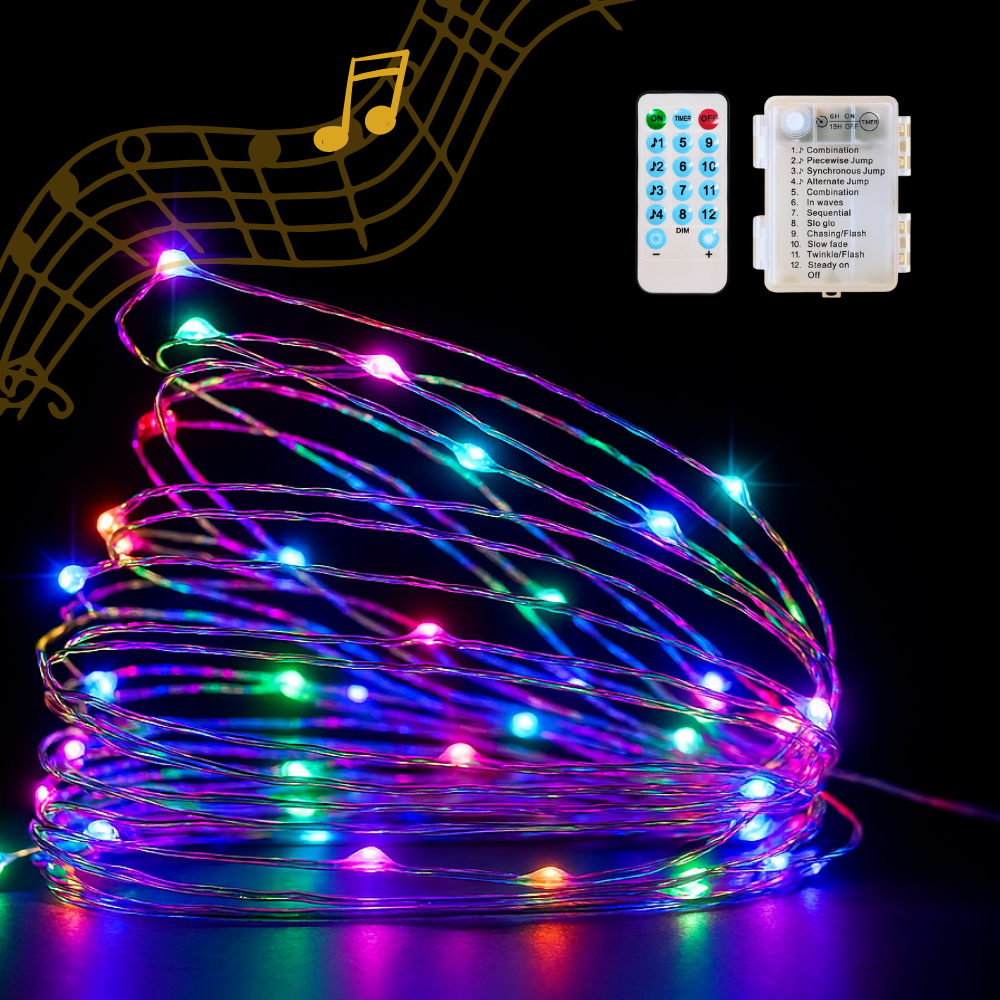 Music Beats Sync Copper Wire Fairy LED String Lights - 3AA Battery Operated | 12 Function Remote Control | IP44 Waterproof | Multi