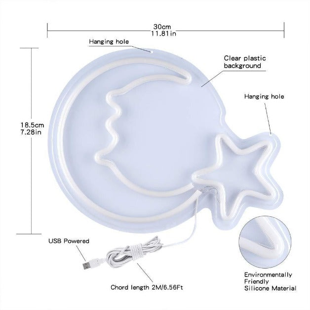 Moon Star Neon Sign Light Wall Hanging | USB Operated