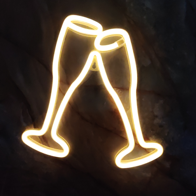 Wine Glass Neon Sign Wall Hanging Light | Battery & USB Operated