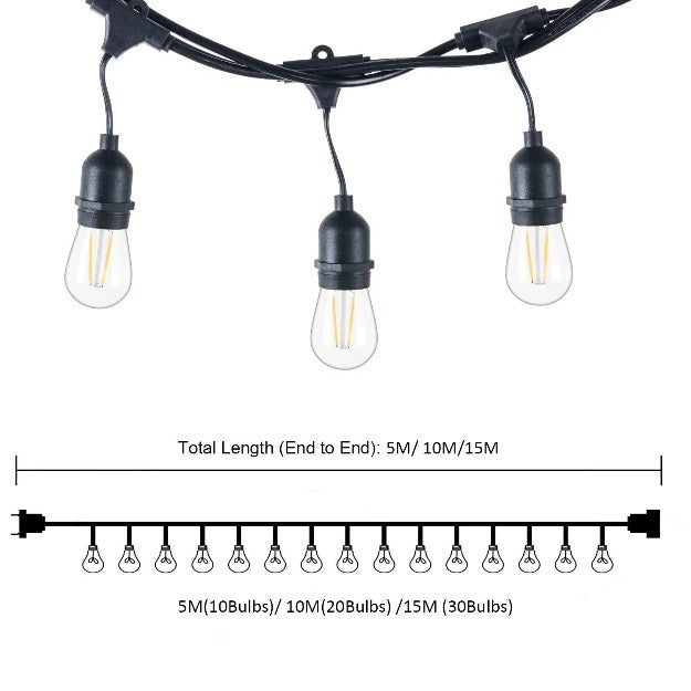 Waterproof Outdoor Hanging Bulb Holder String Lights with ST64 4W LED Bulbs