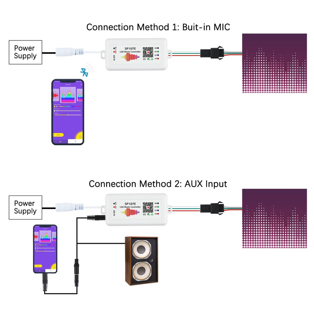 SP107E Music Bluetooth LED Pixel Strip Controller iOS/Android App Control