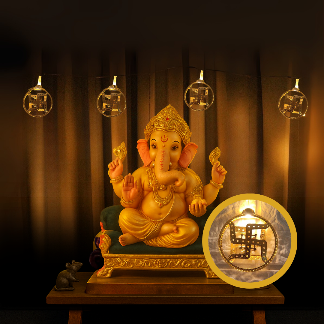 Swastik Metal String Lights | Amber Yellow LED | Ganpati Decoration